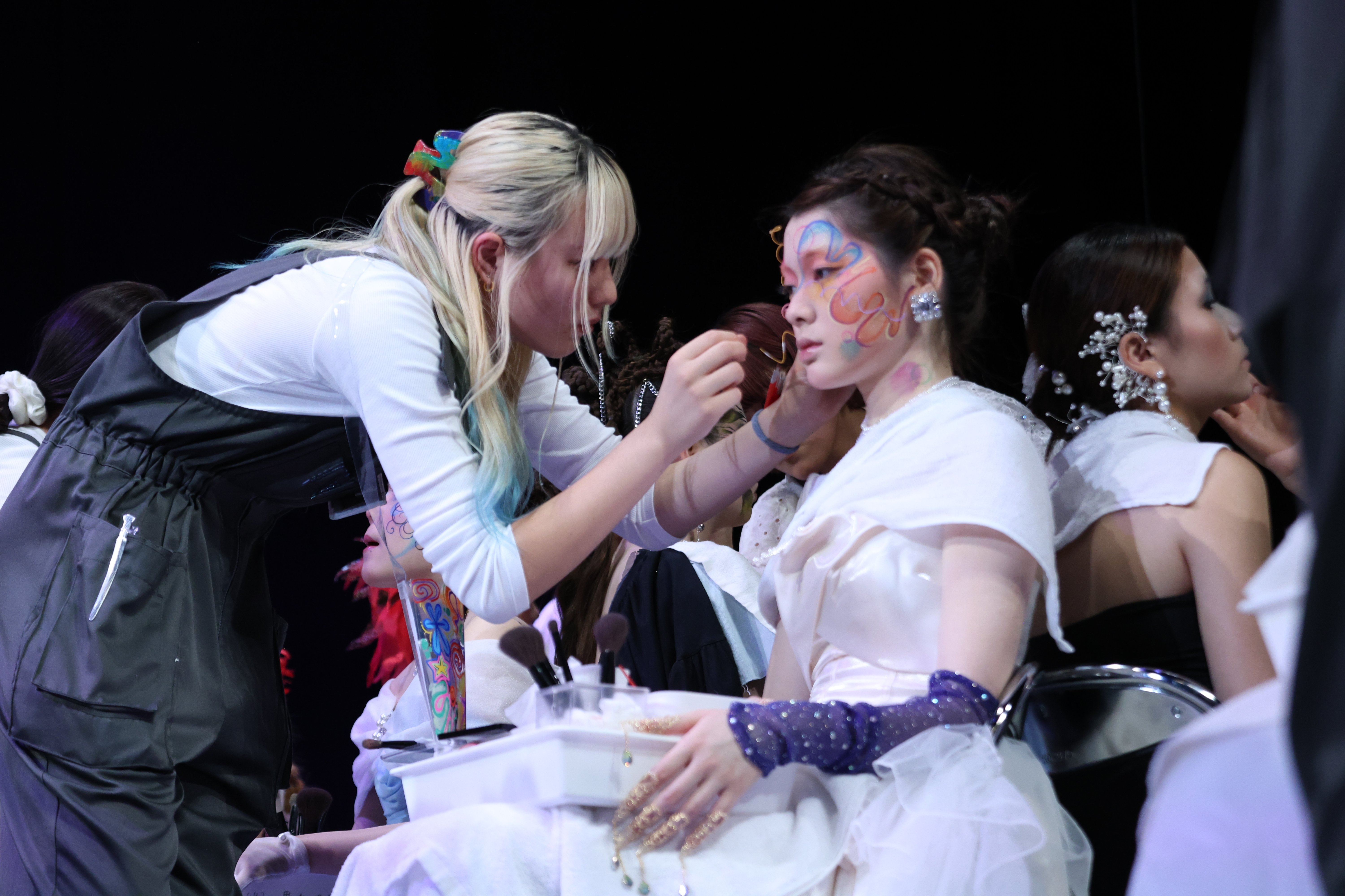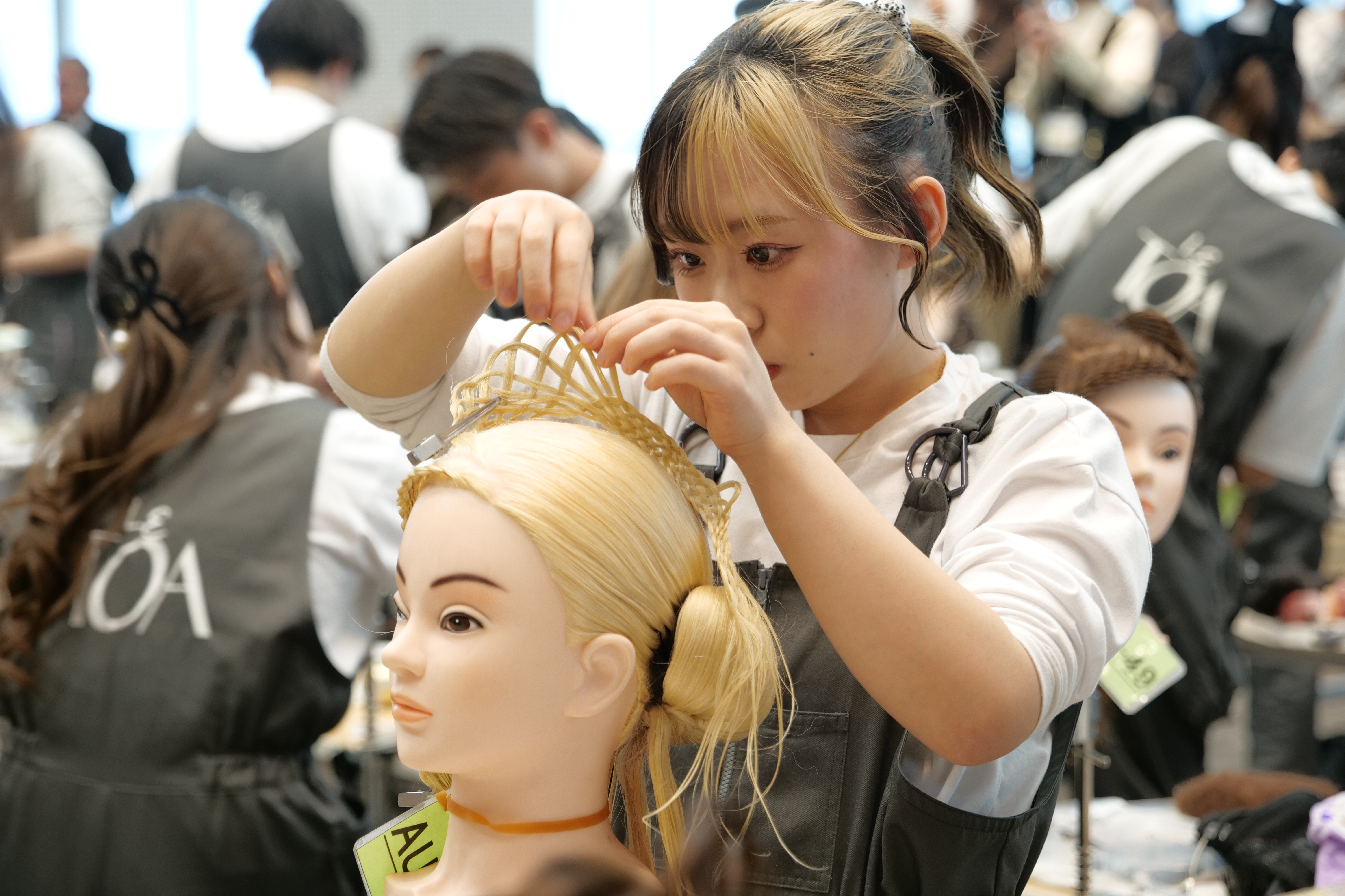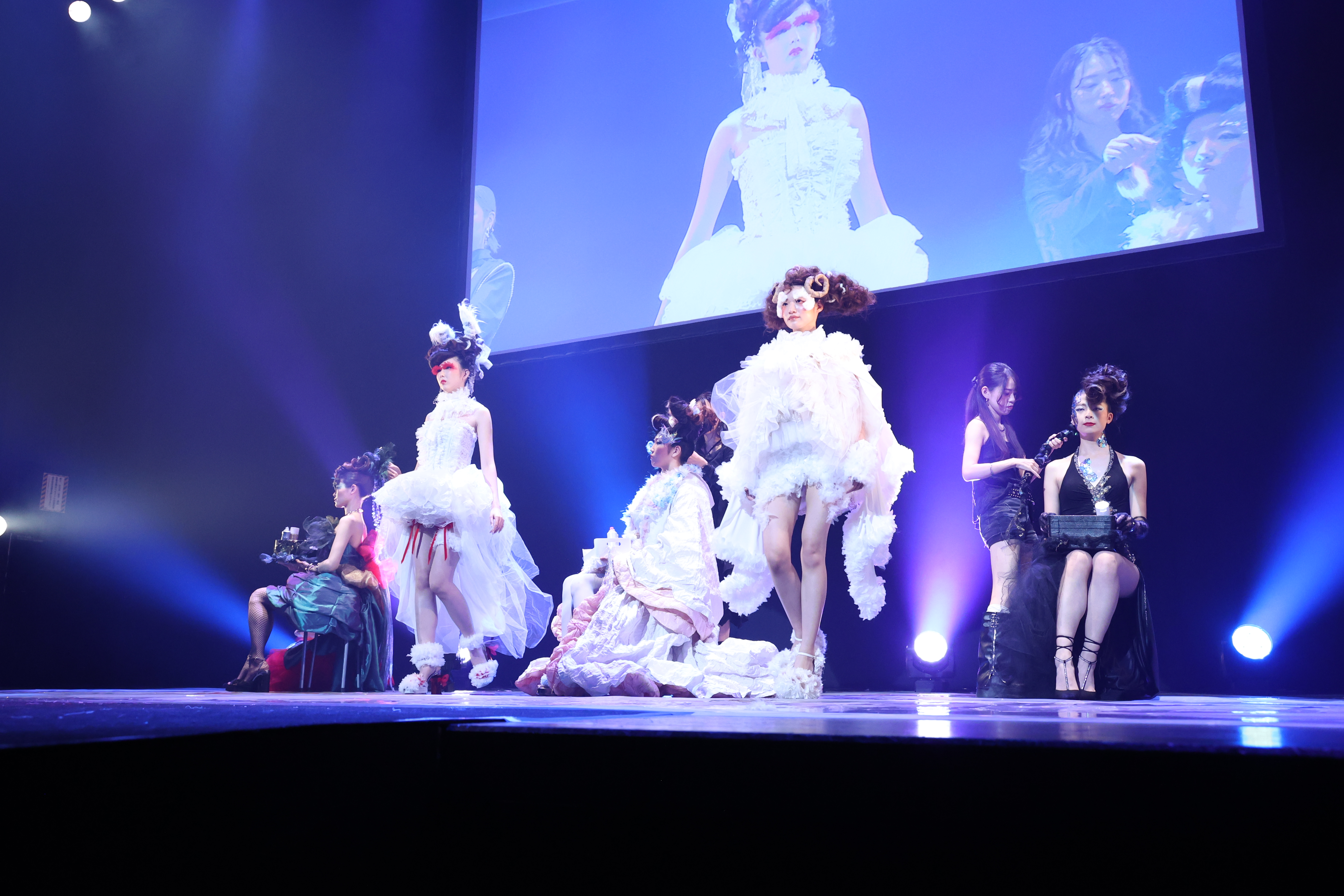 卒業生によるヘアステージでは、現役プロとして活躍する先輩たちが、圧倒的な技術と感性で魅せるステージを披露しました。洗練されたヘアデザインとモデルの表情、音楽や照明との融合が生み出す空間は、まさに芸術の域。観客の視線を釘付けにするそのパフォーマンスに、会場は感嘆の声と拍手に包まれました。