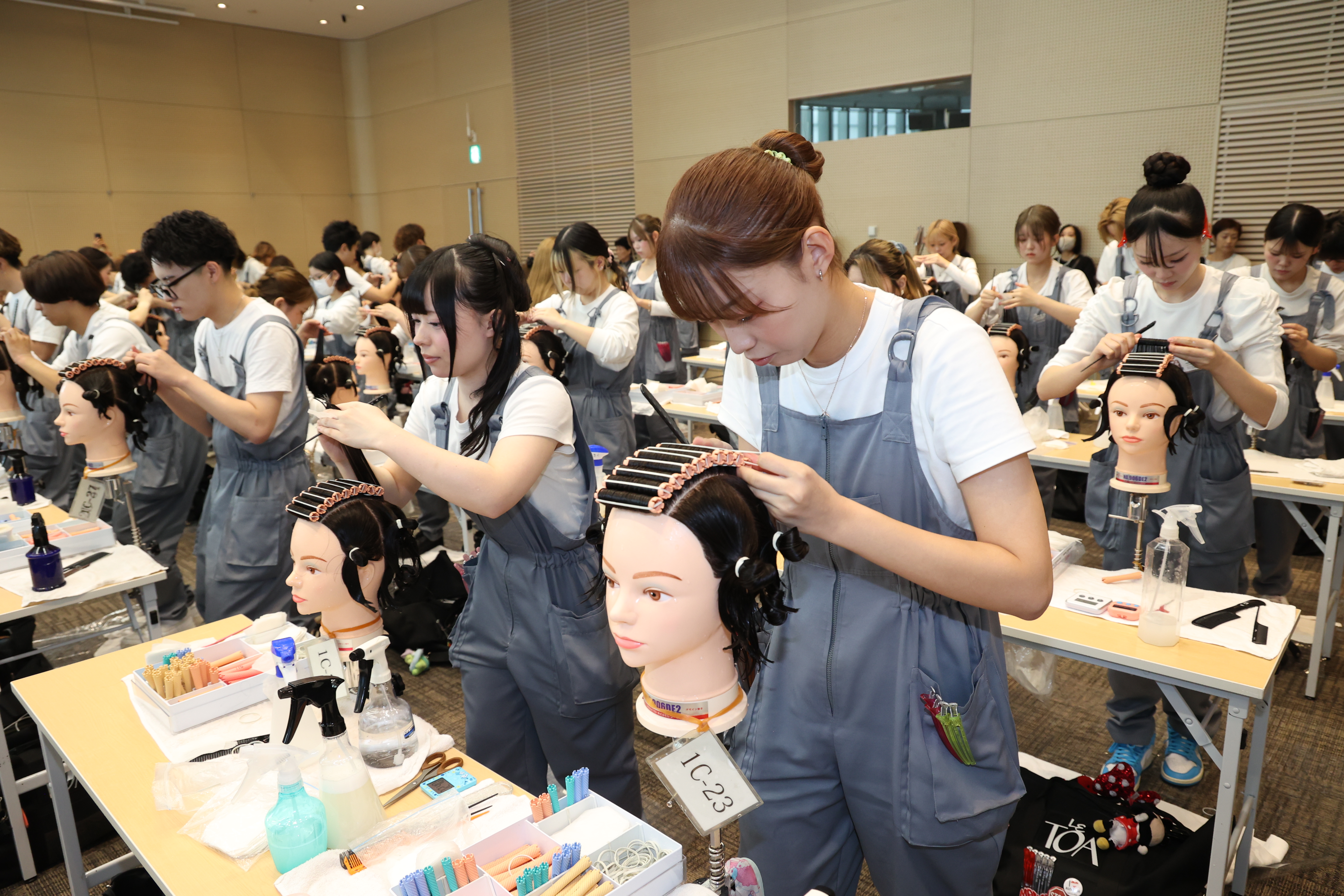 約20社の美容メーカーによる最新プロダクトの展示ブース、在校生による技術コンテスト、卒業生による華やかなヘアステージなど、学校・サロン・メーカーが一体となって創り上げる産学連携の祭典です。