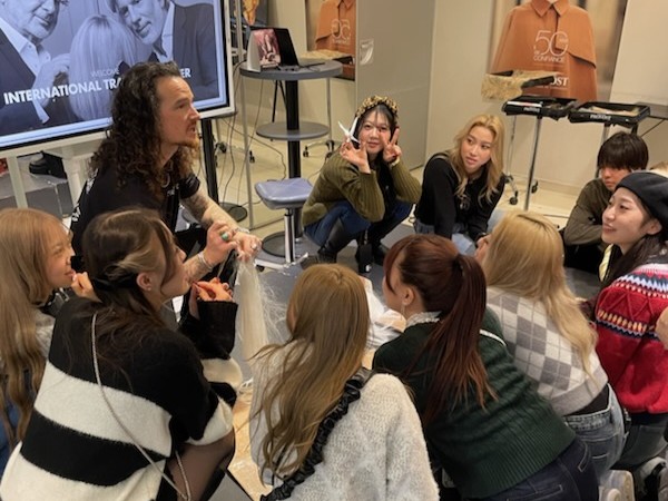 第一線で活躍するトップクリエイターの講師陣による、カットやアップスタイルのデモンストレーション。その鮮やかな手つきと、細部にまで宿るこだわりに学生たちの視線は釘付けでした。