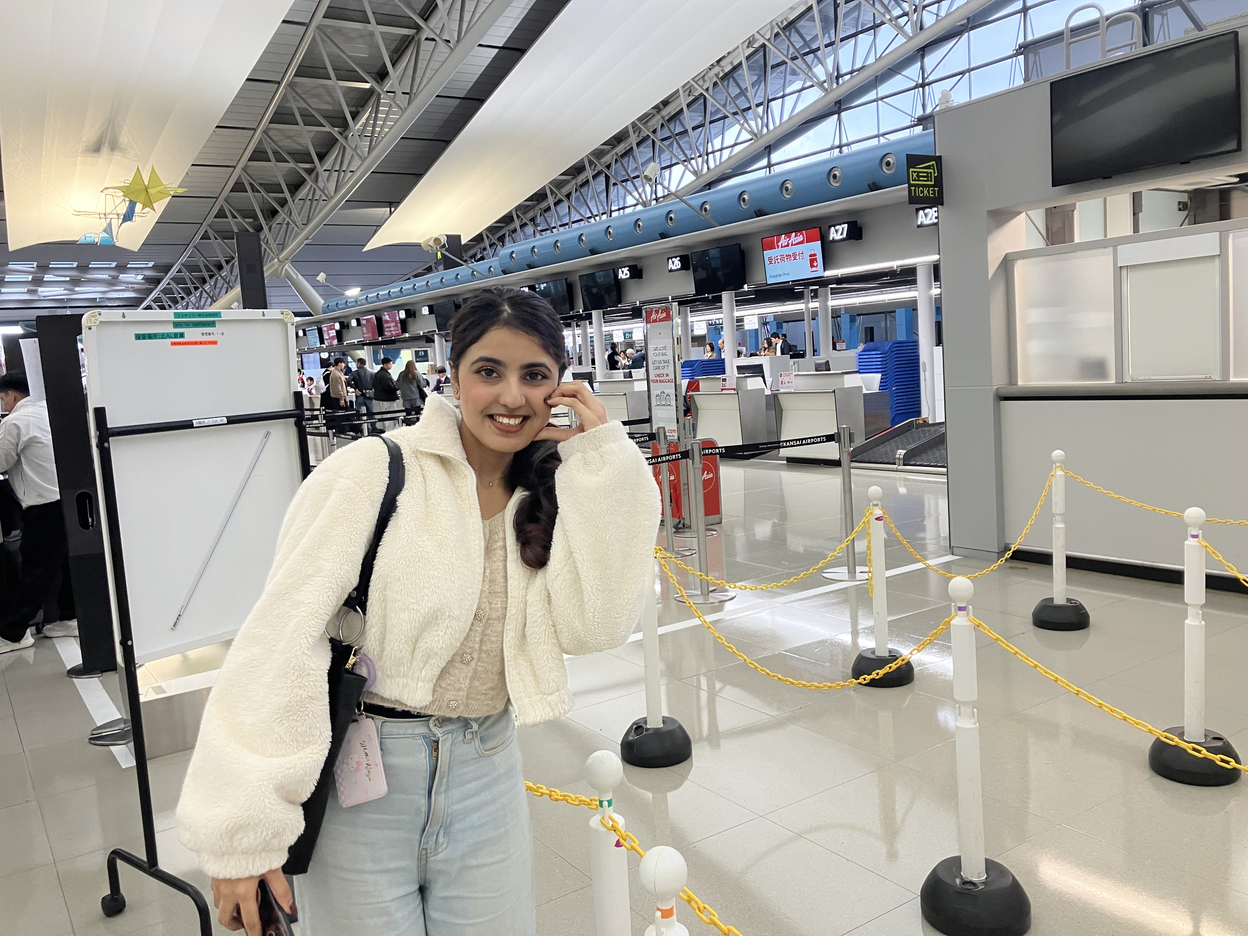 国際流通の授業の一環で校外研修に行った際に、関西空港でグランドスタッフとして働く、2年前に国際日本専攻を卒業したKさんを訪れました!